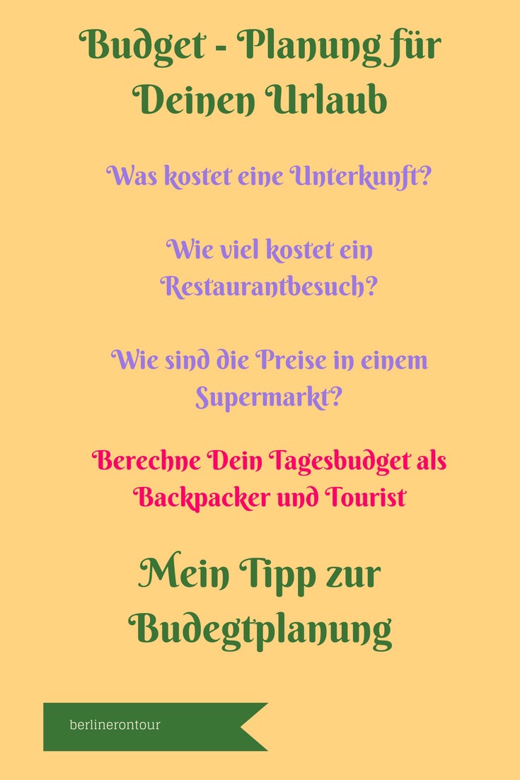 Positiv ist auch, dass ein Tagesbudget für Backpacker aber auch für Touristen ersichtlich ist. Die aufgeführten Preise können ein wenig variieren und bieten demzufolge nur einen Anhalt für deine Reisekalkulation.